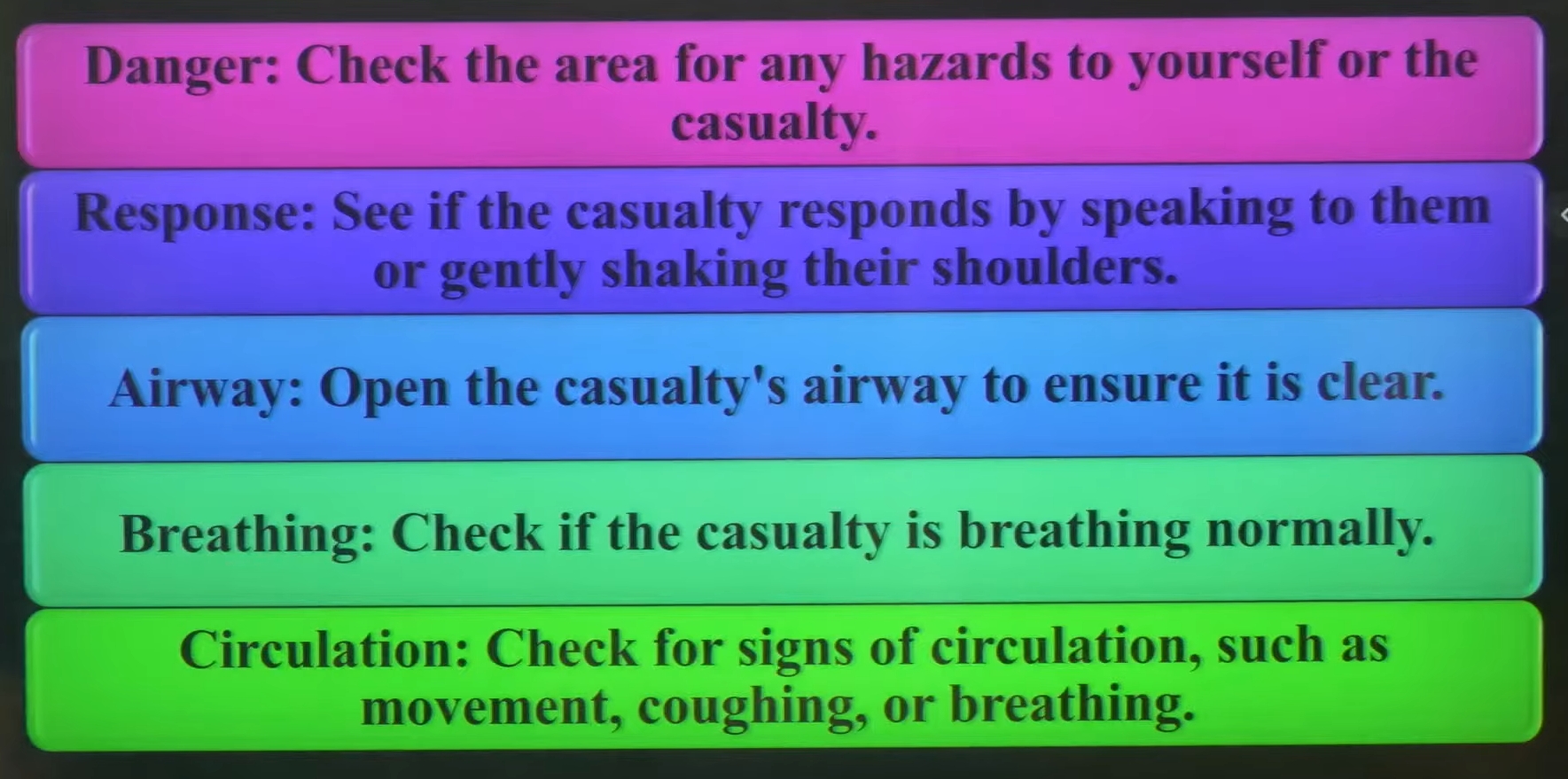 • In first aid, ABC stands for Airway, Breathing, and Circulation.